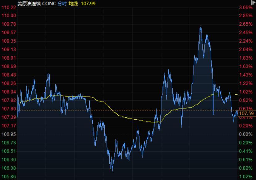 布油涨逾1%,突破每桶114美元;美油盘中触及109.81美元,是3月28日以来最高,因利比亚生产中断加剧了人们对乌克兰危机期间全球供应紧张的担忧。