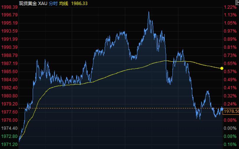 现货黄金尾盘上涨0.21%,报1978.50美元/盎司,稍早曾触及3月11日以来最高的1998.39美元,金价涨势受抑,因指标10年期美债收益率跳升且美元进一步上涨,这限制了海外买家对黄金的胃纳。