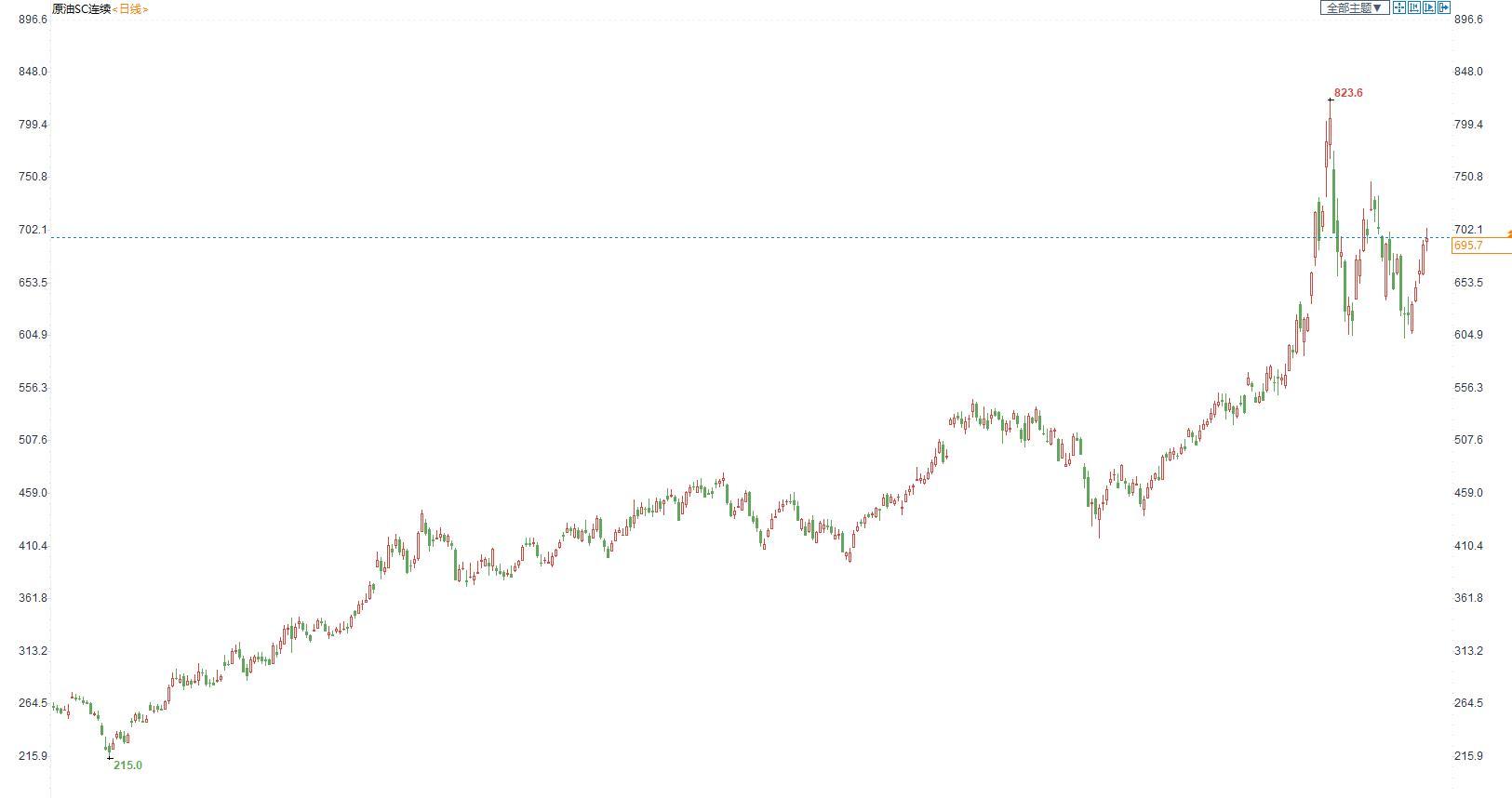 周一(4月18日)上海原油价格收盘上涨19.5元,涨幅2.88%。主力合约2205终盘收于695.7元/桶,涨19.5元/桶。油价收盘上涨,主要因为市场仍然当有俄罗斯原油出口受到限制,供给不平衡忧虑支持油价。