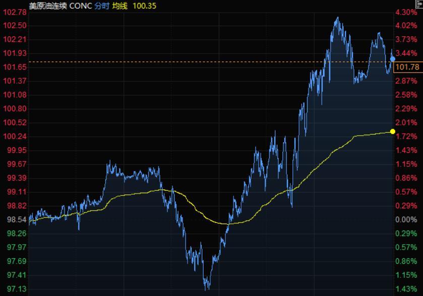 美油涨超3%,尾盘收报101.78美元/桶,俄罗斯暂停了对波兰的天然气供应,市场预期欧盟可能继续考虑削减俄罗斯石油进口的选项。