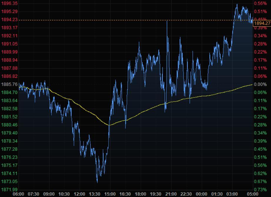 现货黄金从10周低位大幅反弹,尾盘回升至1894美元附近,受累于强势美元和对美国加快加息步伐的预期,盘中稍早曾触及1871.99美元,为2月17日以来最低。