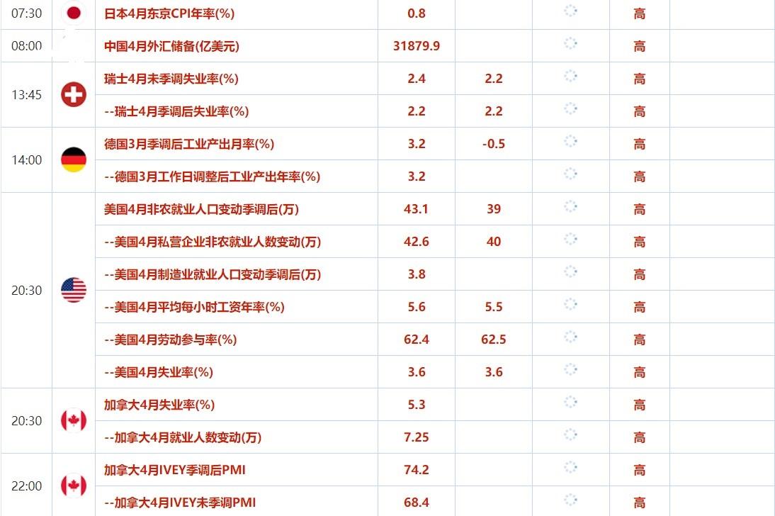 周五(5月6日)关键词:美国4月非农数据,纽约联储主席威廉姆斯