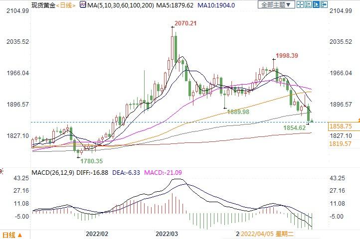 北京时间5月3日13:23 现货黄金 报 1858.75美元/盎司