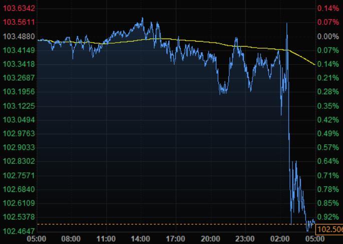 鲍威尔讲话后,美元指数大幅下跌,刷新近一周低点至102.45。