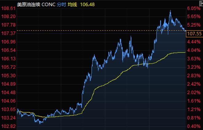 商品收盘方面,COMEX 6月黄金期货收跌0.1%,报1868.80美元/盎司。WTI 6月原油期货收涨5.40美元,涨幅5.27%,报107.81美元/桶;布伦特7月原油期货收涨5.17美元,涨幅4.92%,报110.14美元/桶。