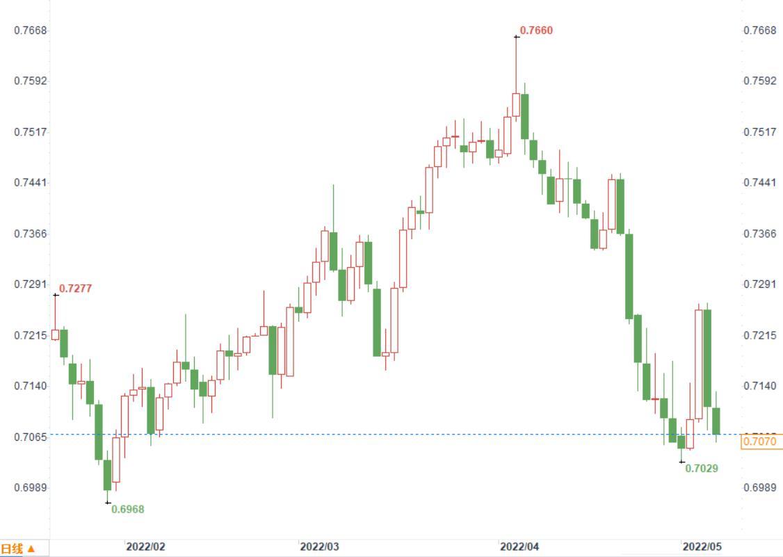 本周澳元兑美元涨0.16%至0.7070,周二,澳洲联储甚至也宣布加息25个基点,将基准利率从历史低点0.1%上调至0.35%,超出市场预期的0.25%。这是澳洲联储2010年以来的首次加息,同时也是近15年来首次在澳大利亚大选期间加息。并且澳洲联储还暗示将进一步加息,推动澳元和债券收益率走高。