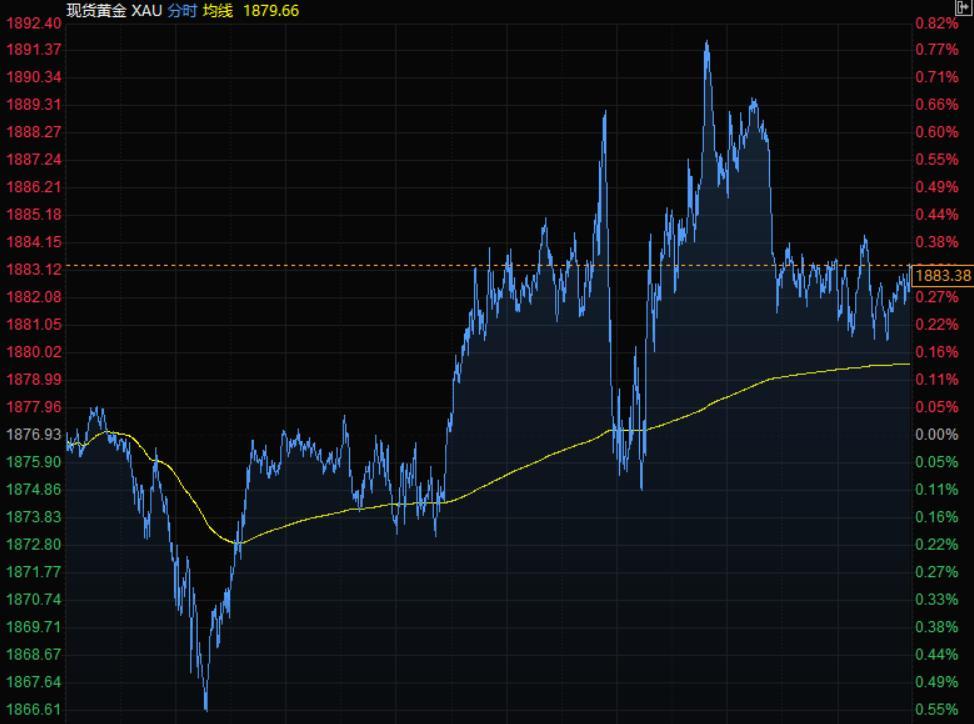 金价周五小幅上涨,现货黄金收报1883.38美元/盎司,但周线连续第三周下跌,受累于美联储大幅加息的前景,而需求担忧拖累钯金一度急挫逾8%。美债收益率攀升,且强于预期的美国就业数据被认为给更大幅度加息提供了理据,这限制了金价上行。