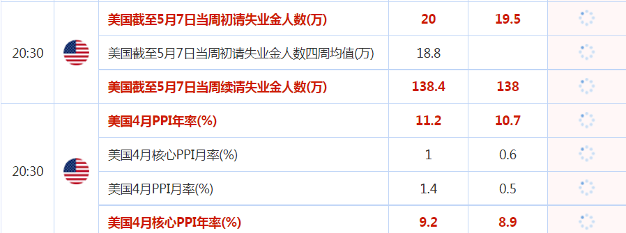 投资者将聚焦周四公布的4月份生产者物价指数(PPI),预计4月份PPI环比涨幅为0.5%,3月份为1.4%。预计4月同比增幅为10.7%,3月为11.2%。