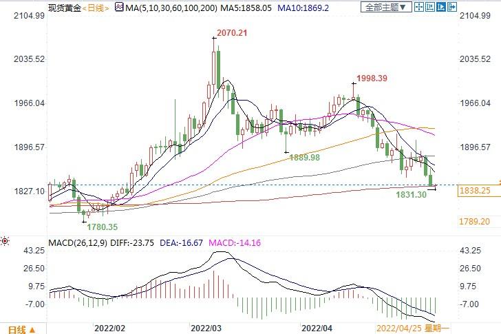 澳新银行称,尽管当日下跌1%,但金价下跌幅度有限,因为每盎司1800美元是黄金的坚实价格底部。