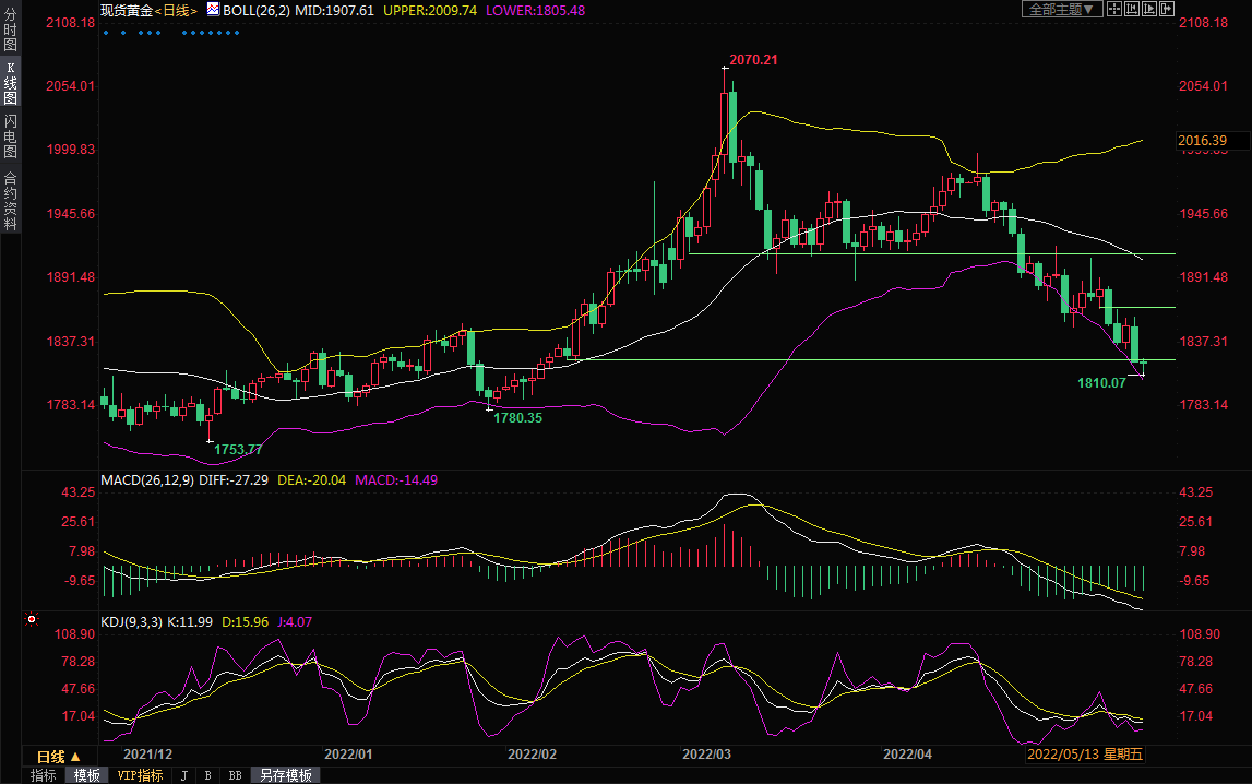 周五(5月13日)亚市盘初,美元指数守在隔夜创下的近20年新高附近,令金价继续承压,现货黄金一度创逾三个月新低至1810.07美元/盎司。美国参议院周四批准了鲍威尔执掌美联储的第二个四年任期,为他带领美联储对抗40年来最高通胀铺平了道路。投资者押注美联储将坚持激进加息,进而蜂拥买入美元,帮助美元刷新近20年高点至104.93,隔夜金价也直接失守200日1836附近关键支撑。国际油价周四小幅走高,因国际能源署(IEA)强调了全球燃料库存的紧张局面。