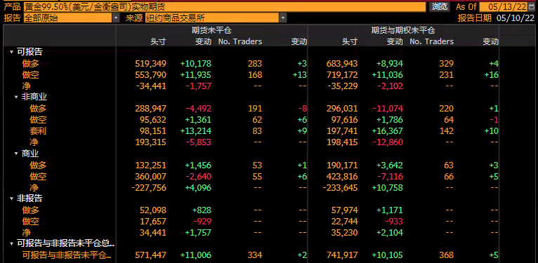 美国商品期货交易委员会(CFTC)数据也显示,投机者也在进一步撤离黄金。截止5月4日至5月10日当周,COMEX黄金期货投机性净多头寸减少9044手至73891手,表明投资者看多黄金的意愿降温。其中,对冲基金的黄金净多头头寸减少了9045手合约,至73891手合约,净多头头寸为14周来最低;只做多头寸减少8633手,至135560手,多头头寸是三个多月以来最低水平;做空头寸增加412手至61669手,空头头寸是近七个月来的最高水平。