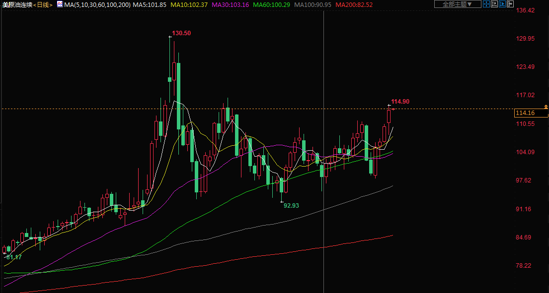 美国汽油期货有史以来首次突破每加仑4美元,全国平均汽油零售价格升至记录新高,原油期货价格上涨往往会迅速蔓延到汽油市场,表明在夏季驾车高峰月底来临之际,人们将面临更高的能源成本,截至5月13日的一周,库欣原油库存下降约262.9万桶,美国库存偏紧导致油价走高。