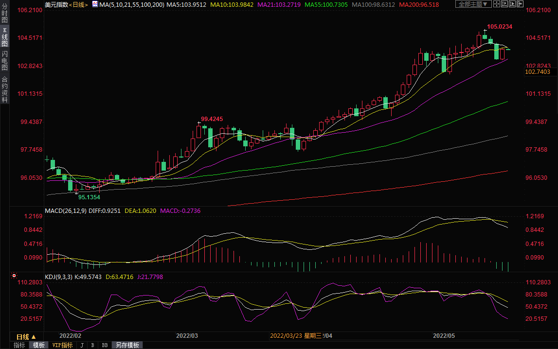 美元周三上涨0.6%至103.90,此前连续三个交易日的跌势中断,对全球经济增长前景和通胀不断上升的担忧打击市场人气,此前一天,美联储主席鲍威尔做出了鹰派发言。