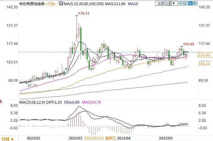 北京时间5月20日12:48 布伦特原油连续 111.41美元/桶