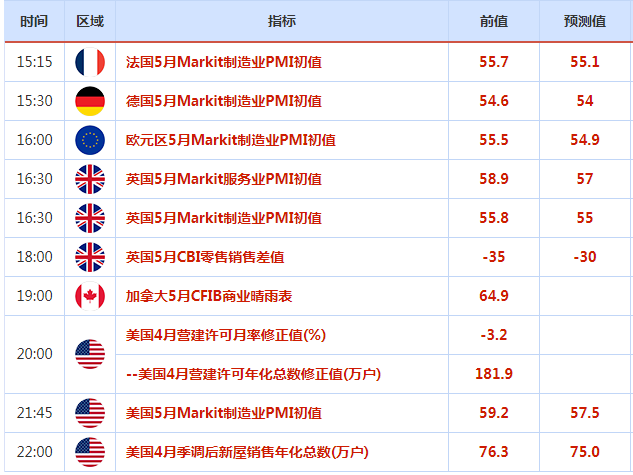 5月24日财经早餐:美元续跌助涨金价,但欧美股市反弹限制涨幅,关注欧美PMI
