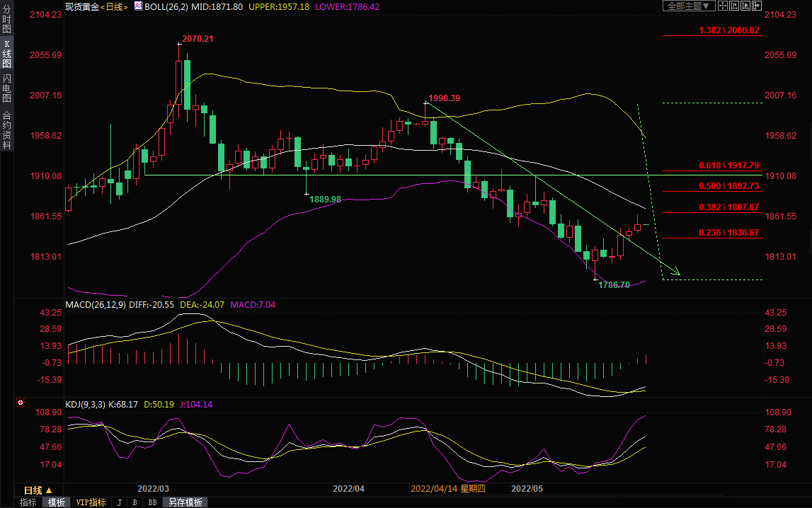 现货黄金上涨0.4%,至每盎司1,853.70美元,盘中稍早一度上涨逾1%,触及1865.29美元的5月9日以来最高。美国黄金期货结算价上涨0.3%,报1,847.8美元。