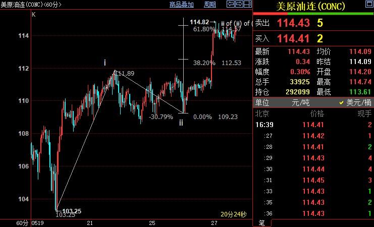 日线上看,NYMEX原油处于自98.20美元开启的上行3浪中,上方阻力看向123.6%目标位118.31美元。小时图上看,油价处于自109.23美元开启的上行iii浪,上方阻力看向76.4%目标位115.83美元。iii浪是自103.25美元开启的上行(iii)浪的子浪。(iii)浪是同样自98.20美元开启的上行((i))浪的子浪。((i))浪是3浪的子浪。