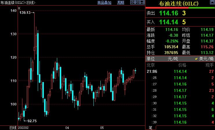 截至发稿,NYMEX原油期货上涨3.15%至113.83美元/桶;ICE布伦特原油期货上涨3.36%至114.07美元/桶。