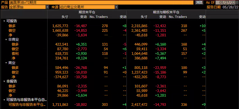 截止5月18日至5月24日当周,对冲基金将纽约商业交易所WTI原油多头头寸净减少8812手,至276018手合约;只做多头寸减少4764手至295362手;做空头寸增加4048手至19344手。