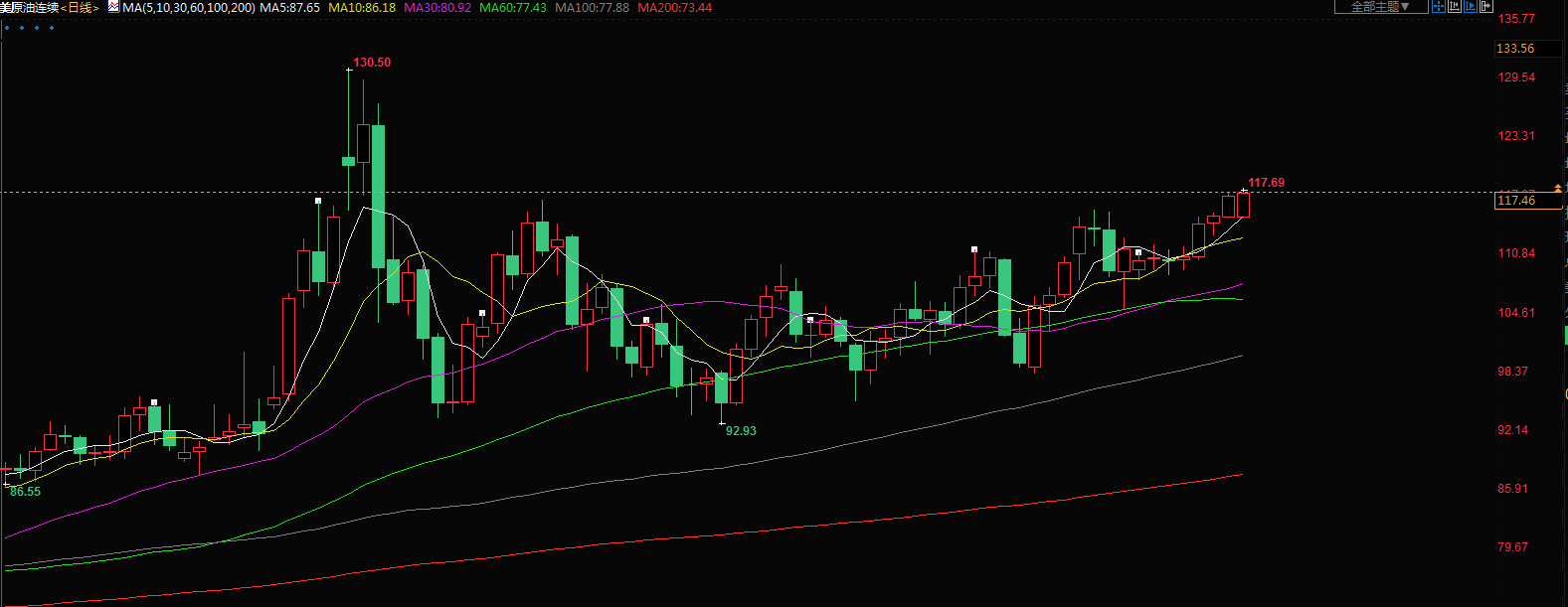财经网站Forexlive分析师Adam Button称,过去六周油价持续反弹,虽然美原油只从102美元/桶涨到117美元/桶,但背景是美国每日从战略石油储备(SPR)释放100万桶石油,以及全球经济面临困境。在多重不利因素下,油价依然反弹,这几乎是前所未有的,说明了油市的确面临供应短缺,俄罗斯每日供应量或减少300万桶/日。从技术面看,美原油一旦突破3月底构筑的116.61美元/桶高点则上看130美元/桶,随着亚洲经济恢复运转,原油需求必将加强。