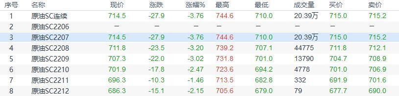 周四(6月2日)上海原油价格收盘回落27.9元,跌幅3.76%。主力合约2207终盘收于714.5元/桶,跌27.9元/桶。油价收盘下跌,主要因沙特向西方盟国承诺增产原油。此外市场消化俄罗斯禁运的担忧情绪。不过,在美欧夏季驾驶需求高峰来临之际,油价始终受到支持。