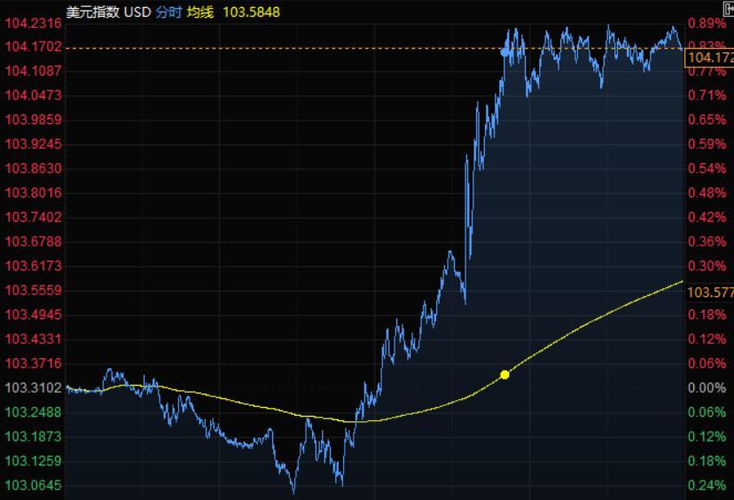 美元指数上周五上涨0.83%至104.17,周一(6月13日)延续涨势,一度刷新近四周高点至104.45。因投资者涌向避险资产且市场预期美联储将激进加息;美国劳工部上周五公布的数据显示,5月份CPI同比上涨8.6%,超过分析师8.3%的预期。
