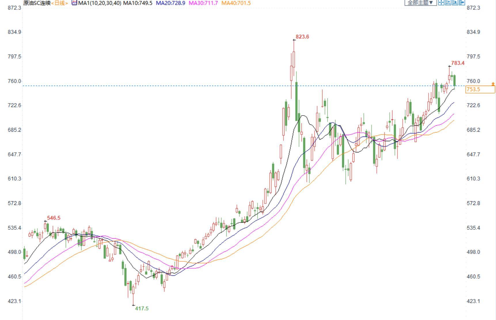 周一(6月13日)上海原油价格收盘下跌16.9元,跌幅2.19%。主力合约2207终盘收于753.5元/桶,跌16.9元/桶。油价收跌,主要因在全球利率抬升的背景下,全球经济放缓的担忧,打压原油前景,给油价短期回调压力。