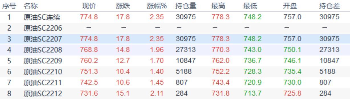 周二(6月14日)上海原油价格收盘上涨17.8,涨幅2.35%。主力合约2207终盘收于774.8元/桶,涨17.8元/桶。油价收涨,主要因原油市场供应紧张的情绪延续,缓和了美联储加息预期带来的压力。