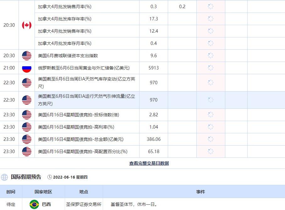 20:30 加拿大4月批发库存年率(%) , 前值 17.3 , 预期值 -- , 公布值:待发布