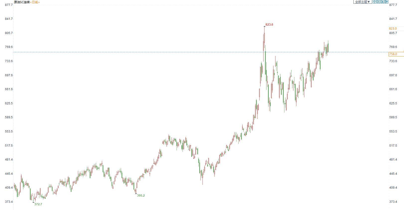 (INE原油日线图)