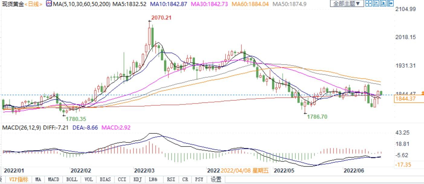 北京时间6月17日15:36,现货黄金报1845.35美元/盎司。