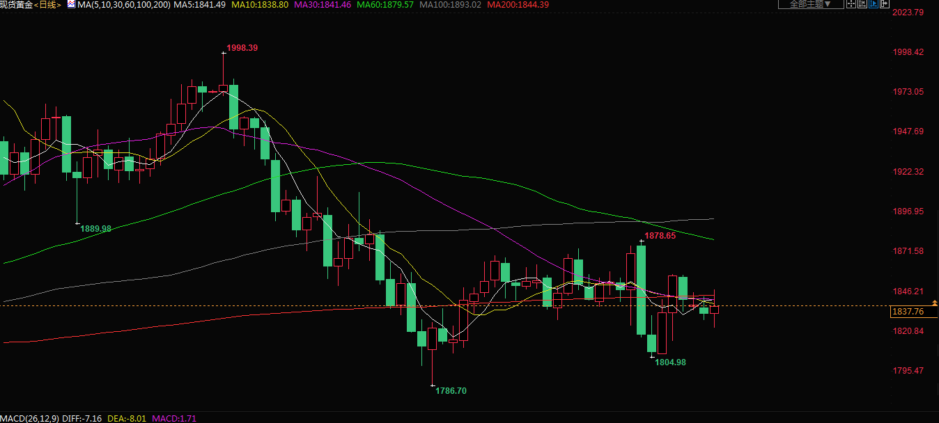 周四(6月23日)亚市盘初,现货黄金微涨,现交投于1837.76美元,美元指数徘徊于104附近,鲍威尔表示,美联储“坚定地致力于”降低通胀,未来加息的步伐将继续取决于将出炉的数据和不断变化的经济前景,使得市场对经济衰退担忧与日俱增之际,美联储埃文斯也表示,未来几个月需要“大幅”加息。