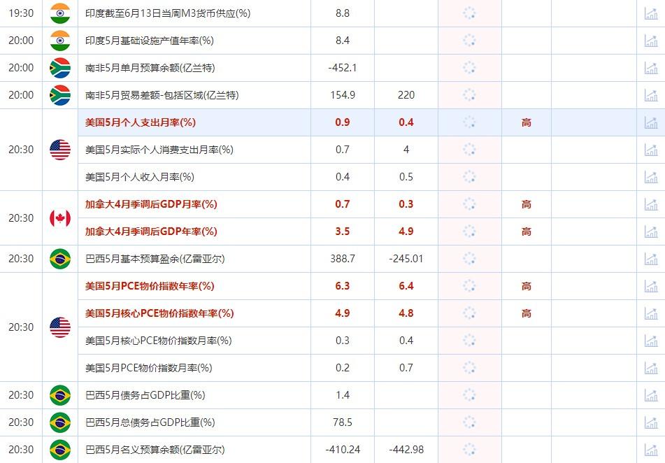 20:30 美国5月核心PCE物价指数年率(%) , 前值 4.9 , 预期值 4.8 , 公布值:待发布