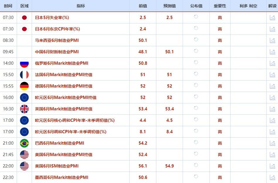 市场关注将于北京时间7月1日17:00公布的欧元区6月通胀数据,以更好地了解欧洲央行在加息方面将有多激进。
