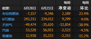 CFTC商品持仓解读:WTI原油看涨合约增加,黄金净多头押注降至近9月新低(6月28日当周)