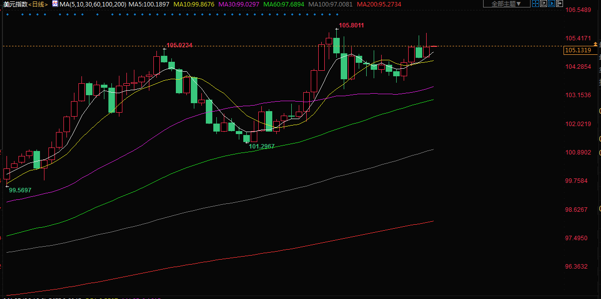 周一(7月4日)亚市盘初,美元交投于105附近,因对美联储激进加息的担忧,和对全球经济前景的悲观,避险情绪提振美元,交易员现预期指标利率将在明年3月触顶,达到3.32%;另外,疫情担忧情绪再起,猴痘疫情在美国或有失控风险,且世卫组织称欧洲或构成猴痘疫情中心。