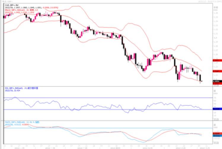 在隔夜外汇市场上,受美元强势创新高的冲击下,英镑兑美元也是快速下滑,而且雪上加霜的是,当日英国的财政和卫生大臣宣布辞职,消息促使英镑兑美元下跌1.4%,盘中最低至2020年3月以来的最低点1.1899。有分析说到,当英国财政和卫生大臣辞职,往往意味着首相下台也只是时间问题了。虽然内阁大臣辞职短期内不会对英镑产生大的影响,但政治不稳定可能会在未来几周内造成大的影响。因此,还要关注这方面的发展。更重要的是,在通胀严重高企的情势下,到目前为止到目前为止,英国央行在货币收紧方面还是以更渐进的步伐加息。只要这种情况存在,英镑势必走软。日线图上,英镑兑美元开始渐渐远离于20期均线下方,各类技术指标继续超负向区域发散,显示下行态势将要延续。短线小时图上出现严重超卖,不排除有调整回升机会。但上方1.21附近料将构成较重的阻力,若汇价不能企立上述水位之上,英镑下行态势暂时得不到扭转。
