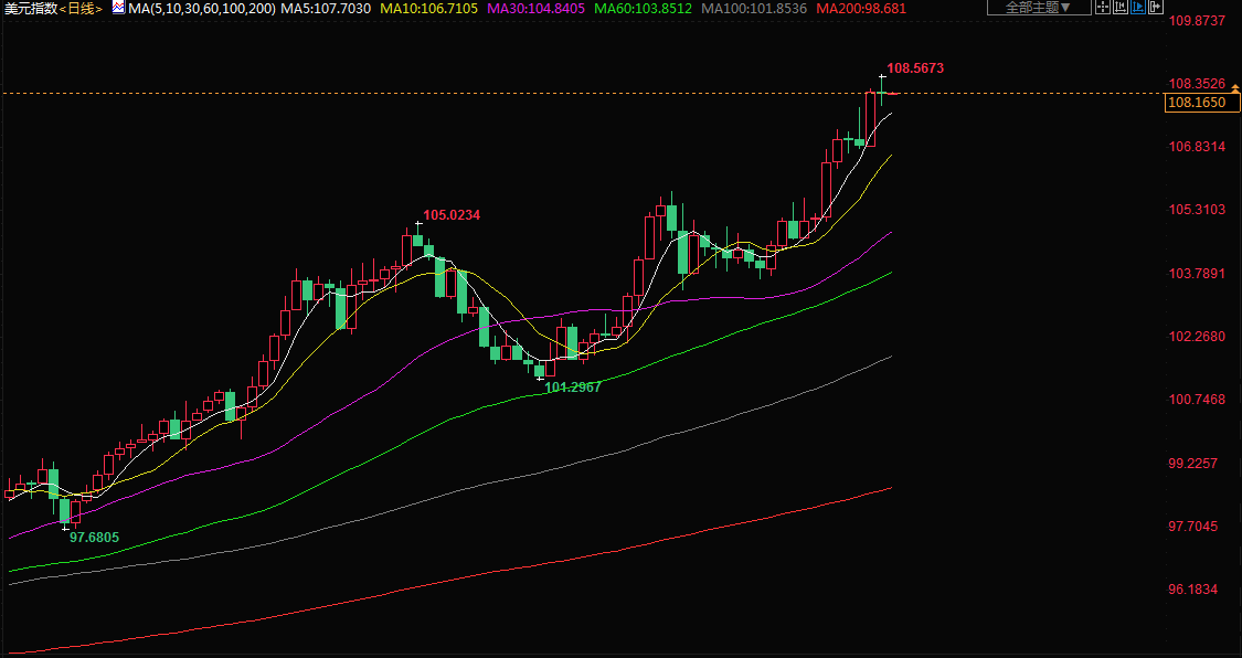 美元指数周二下跌0.07%,盘中一度最高触及108.5673;欧元兑美元周二反弹,此前下滑至20年低点并接近平价,因投资者担心该地区的能源危机会引发经济衰退。欧元兑美元跌至1.00005美元,为2002年12月以来最低,此前数据显示,由于能源担忧、供应瓶颈和欧洲央行加息,7月份德国投资者信心骤降,低于新冠疫情之初的水平。