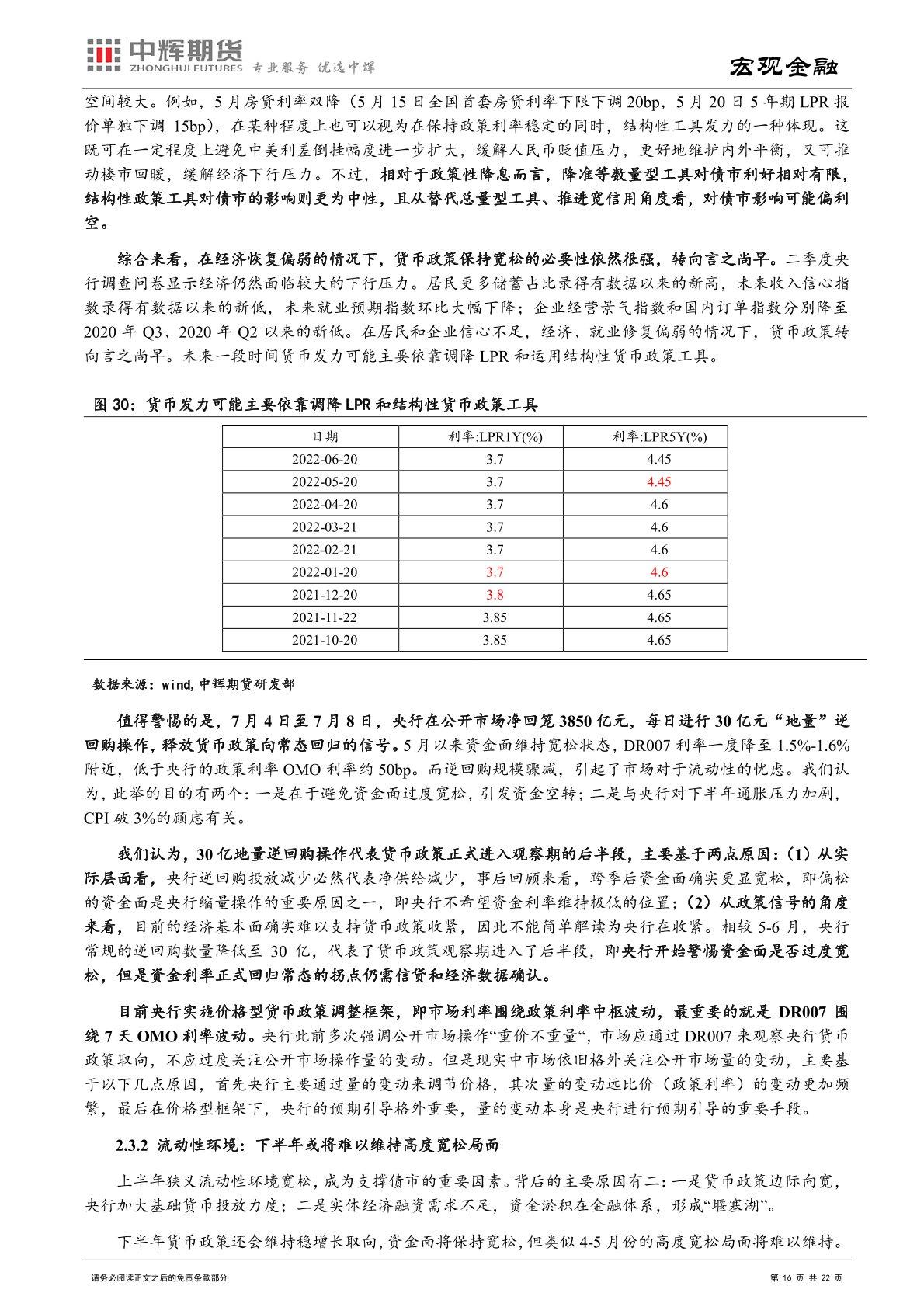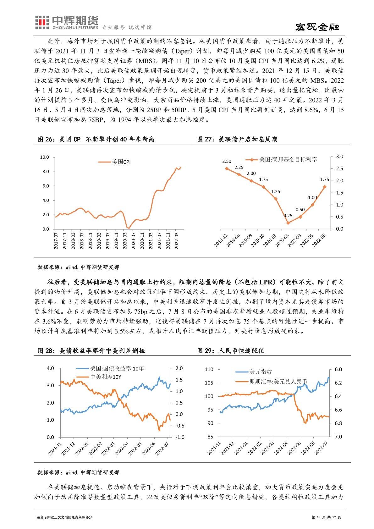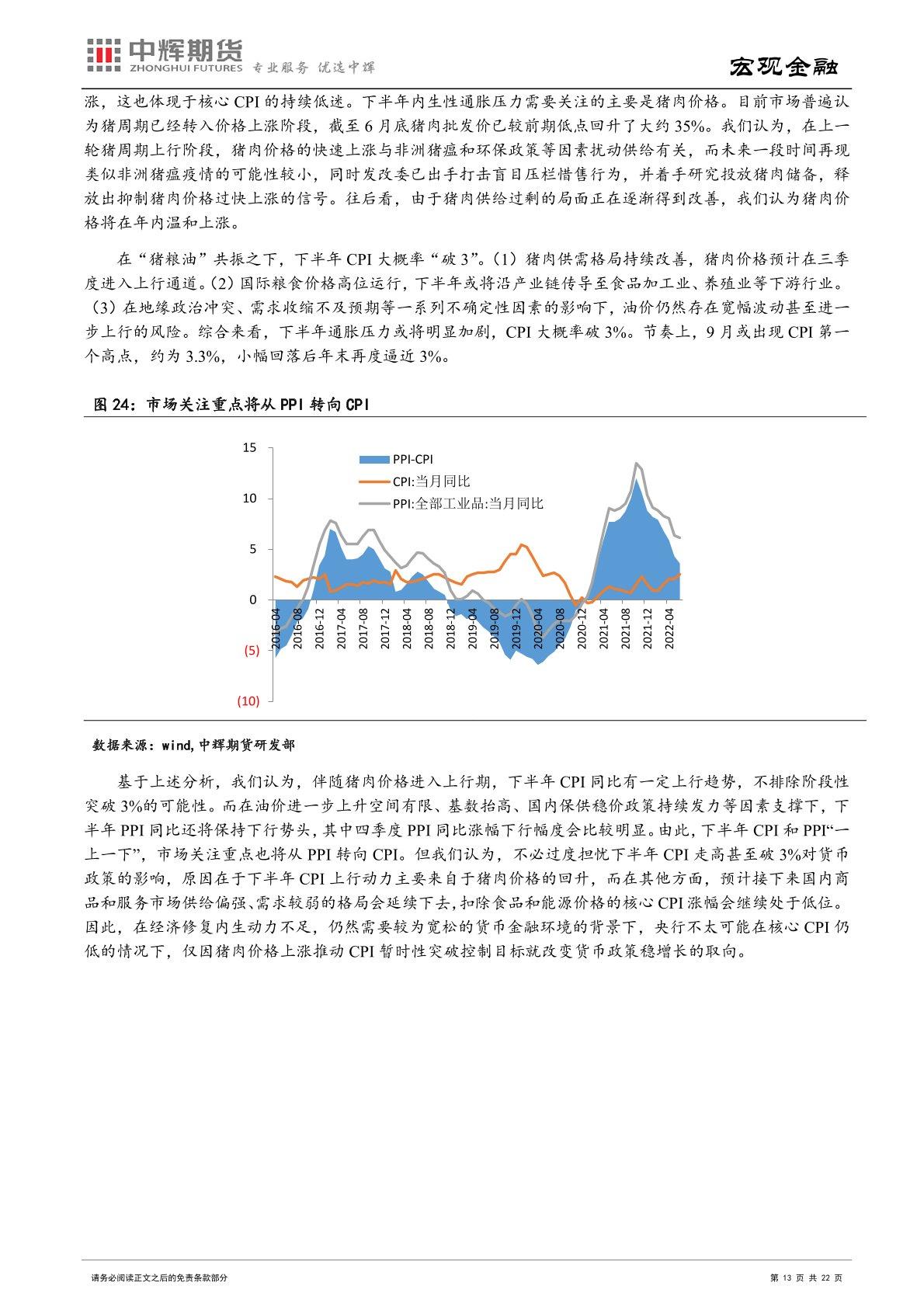 通胀角度:伴随猪肉价格进入上行期,下半年 CPI 同比有一定上行趋势,不排除阶段性突破 3%的可能性。而在油价进一步上升空间有限、基数抬高、国内保供稳价政策持续发力等因素支撑下,下半年 PPI 同比还将保持下行势头。下半年 CPI 和 PPI“一上一下”,市场关注重点也将从 PPI 转向 CPI。在经济修复内生动力不足,仍然需要较为宽松的货币金融环境的背景下,央行不太可能在核心 CPI 仍低的情况下,仅因猪肉价格上涨推动 CPI 暂时性突破控制目标就改变货币政策稳增长的取向。
