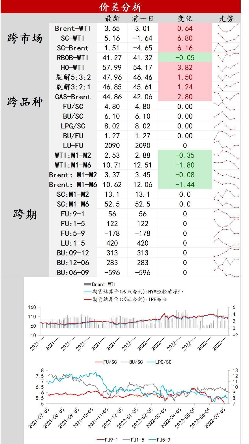 供应端,OPEC月报显示,6月OPEC产量增加23.4万桶/日至2872万桶/日。EIA数据显示美原油产量1210万桶/日。7月8日,美石油钻井597口。需求端,据EIA数据,截止7月1日当周,美精炼厂产能利用率94.5%。库存端,API最新数据显示,截止7月8日当周,美国商业原油库存增加476.2万桶,库欣原油库存增加29.8万桶,汽油库存增加292.7万桶,精炼油库存增加326.2万桶。