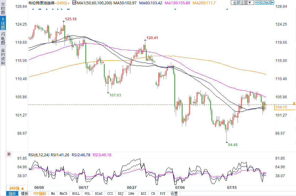 周四(7月21日)美油期货下跌3.5%,结算价报96.35美元/桶。早前,利比亚部长表示,利比亚石油产量将在7至10天内恢复至120万桶/日。与此同时,美国汽油库存增加,且欧洲央行加息引发需求担忧,令油价承压。