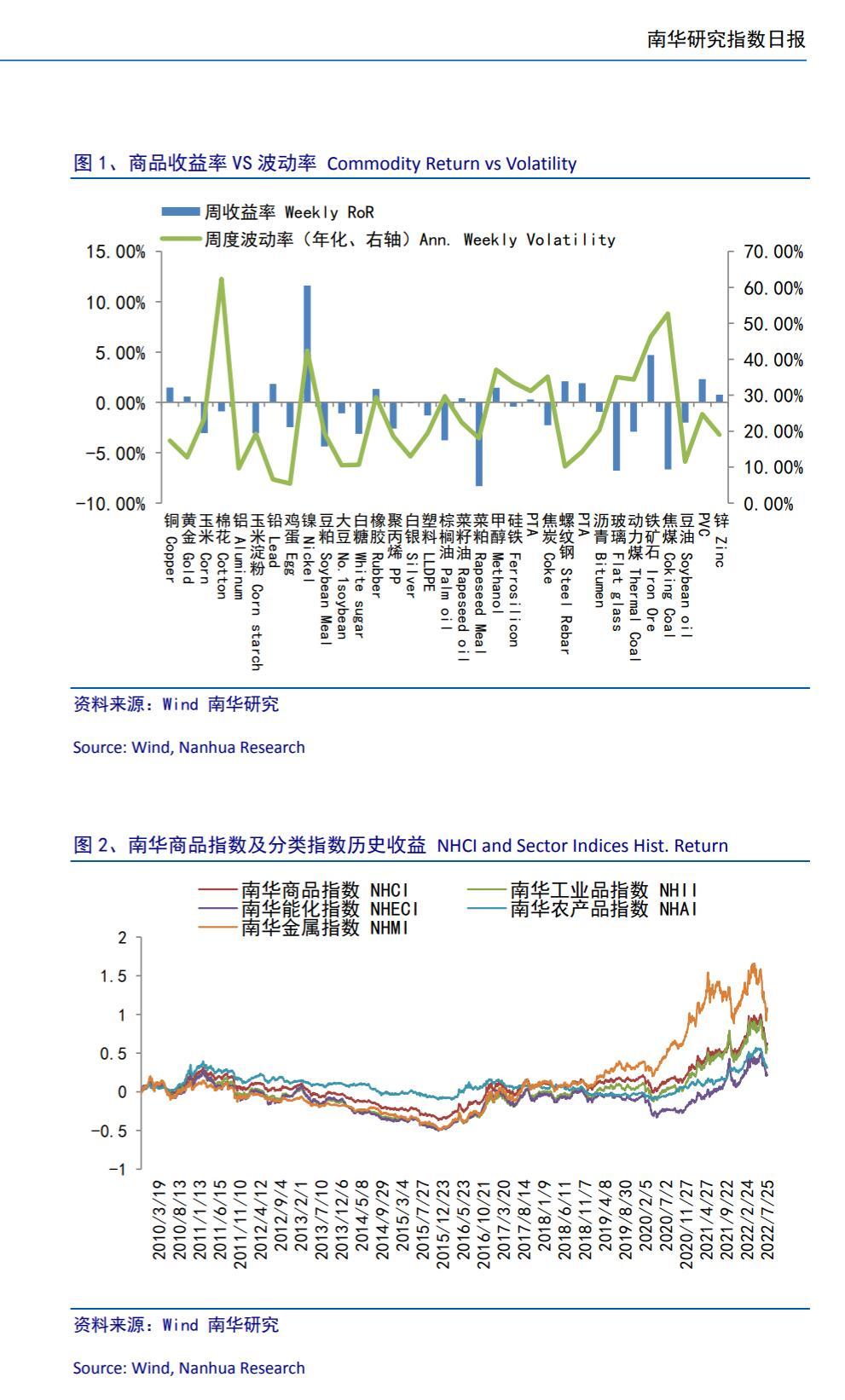 南华期货商品指数日报20220725 2022-07-25 16:52 南华商品指数上涨 0.19%,金属板块和工业品板块均有所上涨,农产品板块和能化板块均有所下跌,最大涨幅金属板块上涨 1.%,最大跌幅农产品板块下跌 0.41%。铁矿石主力合约涨幅最大为 4.41%,苯乙烯主力合约跌幅最大为 4.14%。南华期货授权 一期货 转发