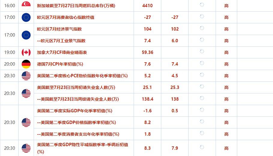 ①摩根大通认为,欧洲即将面临的经济衰退是天然气短缺的隐现,而意大利的政治动荡将给该地区的经济活动带来压力。尽管如此,摩根大通认为经济只会出现温和衰退,但这足以限制欧洲央行的紧缩周期。他们预测欧元区GDP增长将在第三季度放缓至0.5%,在今年第四季度和明年第一季度都将收缩0.5%;