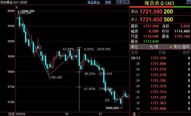 日线图上看,金价自1879美元开启下行((v))浪走势,后市下看100%目标位1667美元。((v))浪是自2070美元开启的下行C浪的子浪。C浪则隶属于自自2075美元开启的调整(IV)浪。