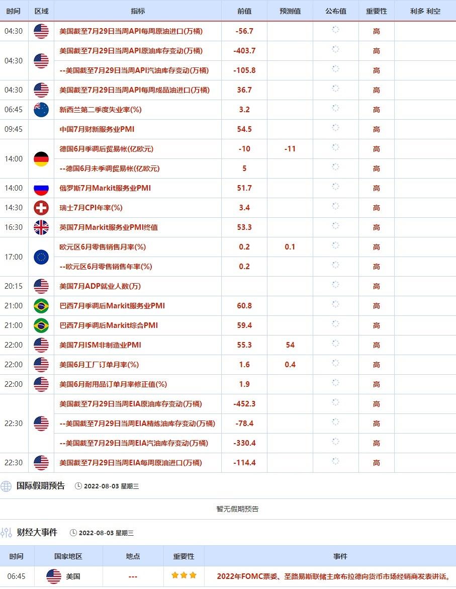③8月3日(周三)关键字:美国6月耐用品订单月率修正值 ,美国截至7月29日当周API和EIA原油库存变动