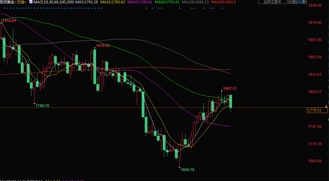 RJO Futures高级市场策略师Bob Haberkorn表示:“黄金一直停留在1800美元附近,今天美元走强正推动黄金和整个大宗商品市场下跌。现在黄金交投很谨慎,美联储将继续加息,投资者确实预期利率即将提高。”