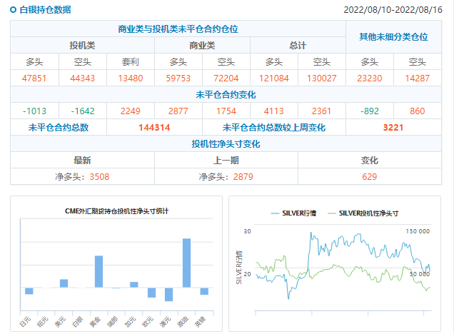 美国商品期货交易委员会(CFTC)数据显示,截至8月16日当周,投机者所持COMEX黄金净多头头寸减少6561手合约至46236手合约。COMEX白银期货投机性净空头寸减少463手至5766手。COMEX铜期货投机性净空头寸减少3122手至16204手。