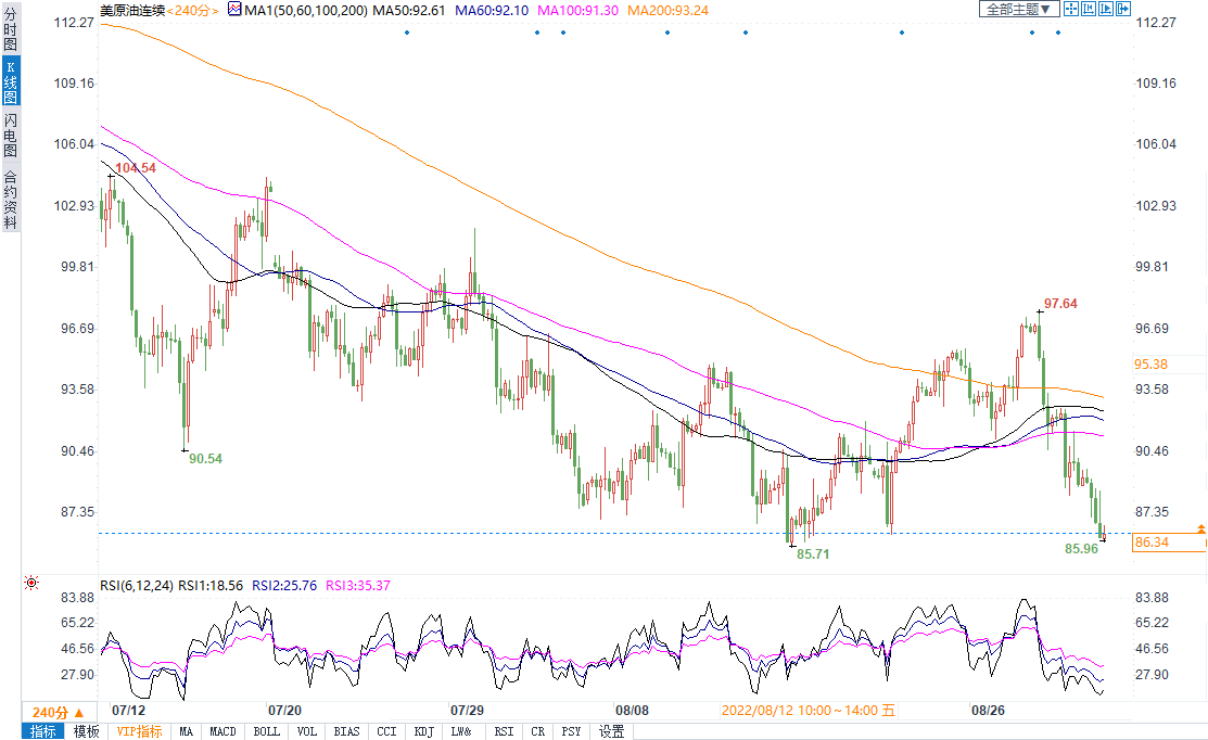 周四(9月1日)布油期货下跌3.4%,结算价报每桶92.36美元。早前公布的数据显示,美国劳动力市场和制造业仍具韧性,为美联储激进加息提供更大空间,市场担忧加息削弱燃料需求。与此同时,因疫情实施的封控措施使得投资者更加忧虑需求前景。
