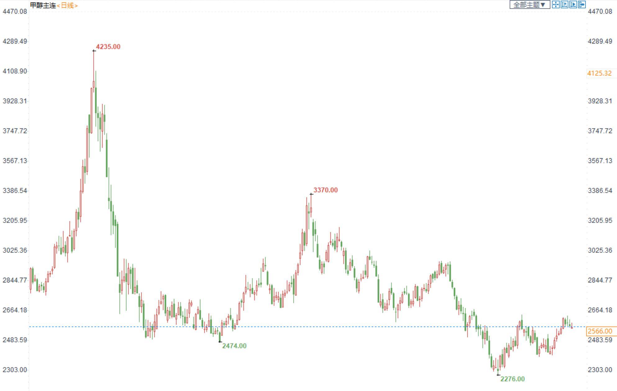 期货市场,甲醇2301合约小幅收跌,收盘价2566。江苏现货报价2530-2535,市场成交一般。