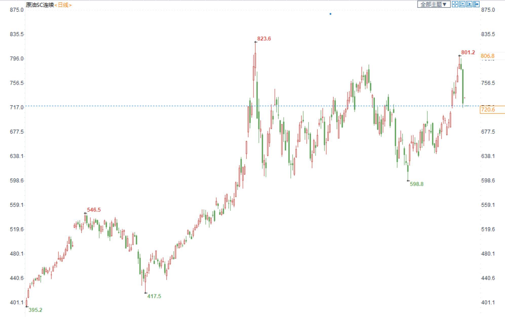 期货市场,布油目前在91美元附近震荡整理,国内SC2210合约收盘价698.9,跌超2%。